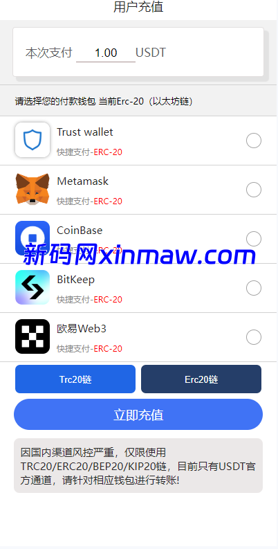 只测试了trc链授权正常,未测试erc链,源码附带提币单页