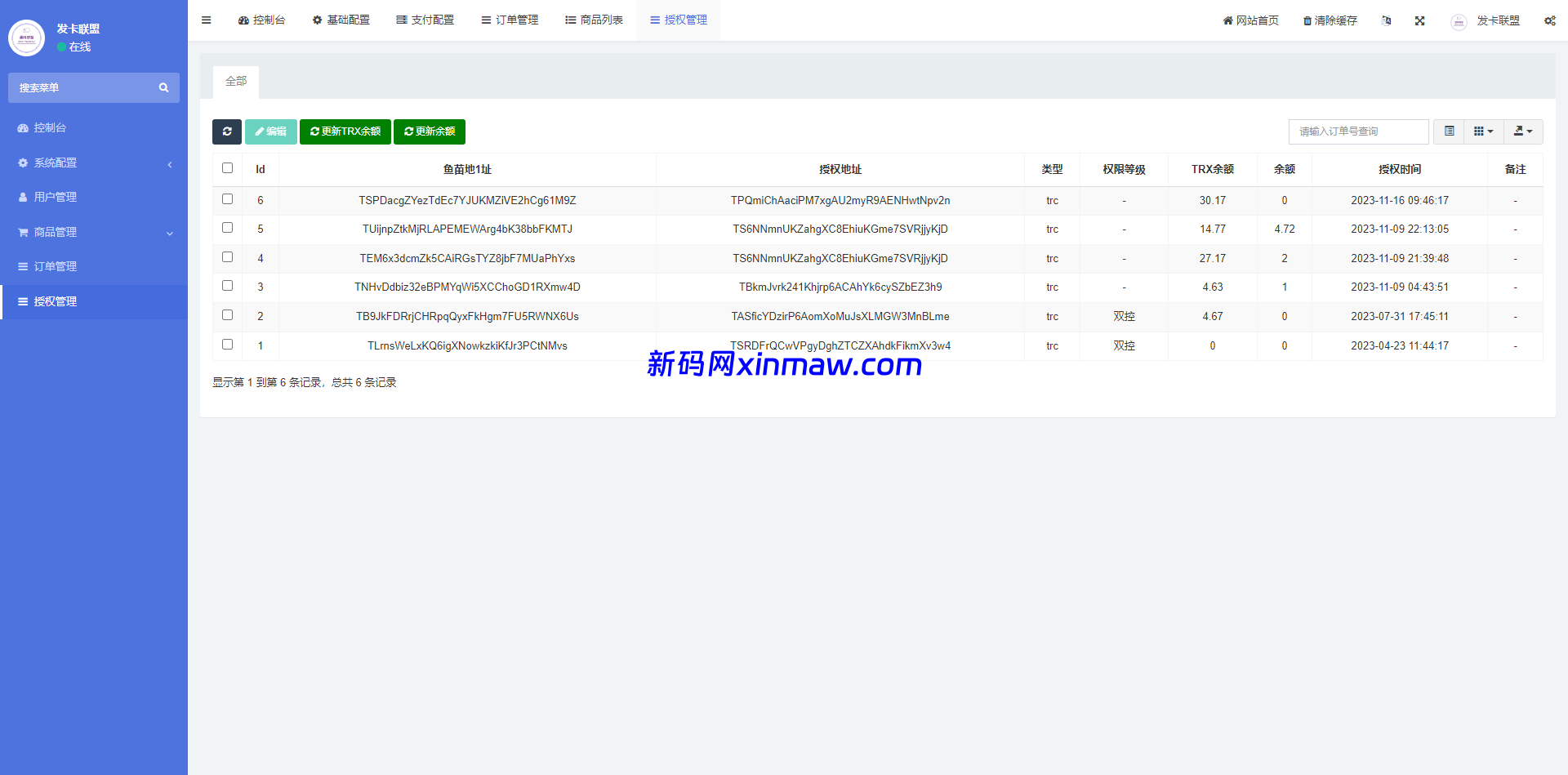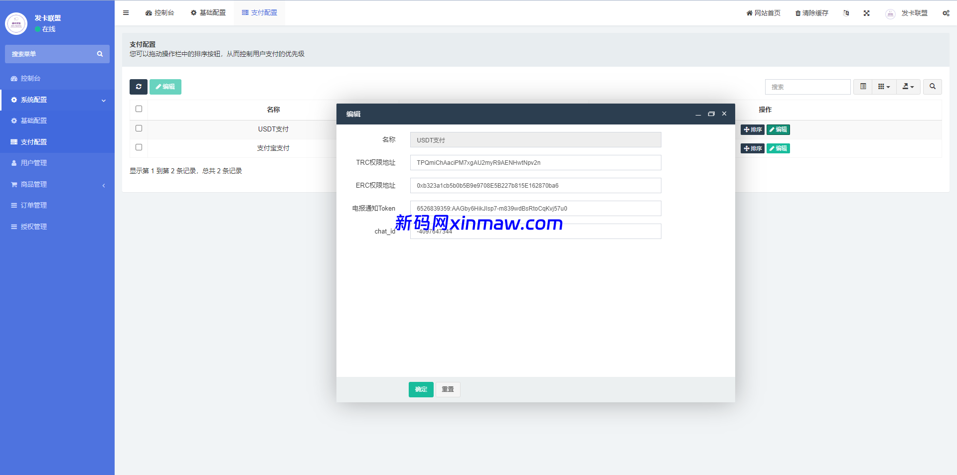此套是二开的授权发卡系统,支持trc、erc双链授权,pc端支持扫码
