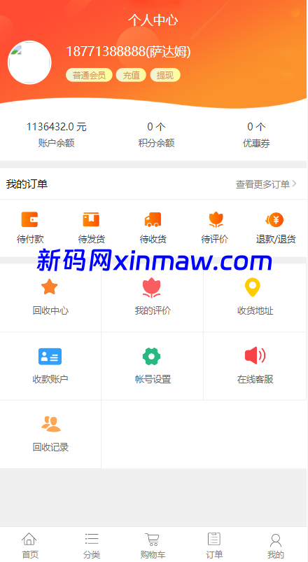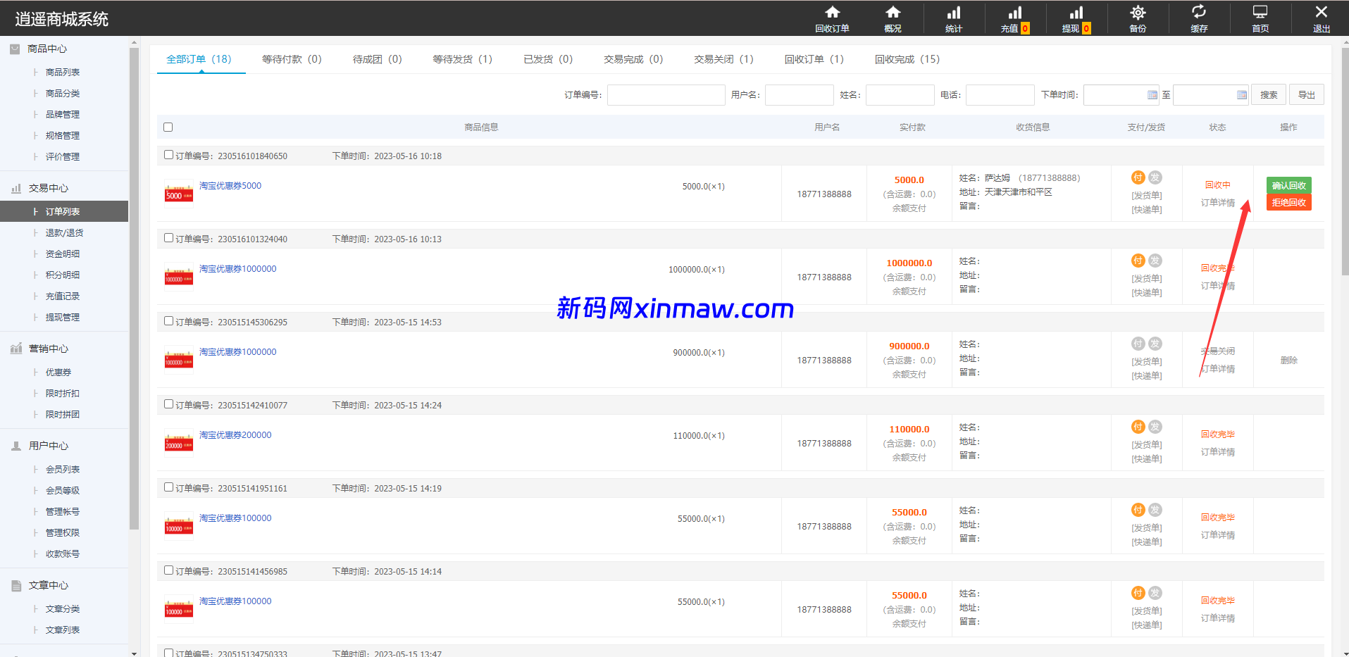 回收系统直接集成系统不需要二开搭建,前台提交后台订单直接回收,新增功能每个商品可设置回收折扣